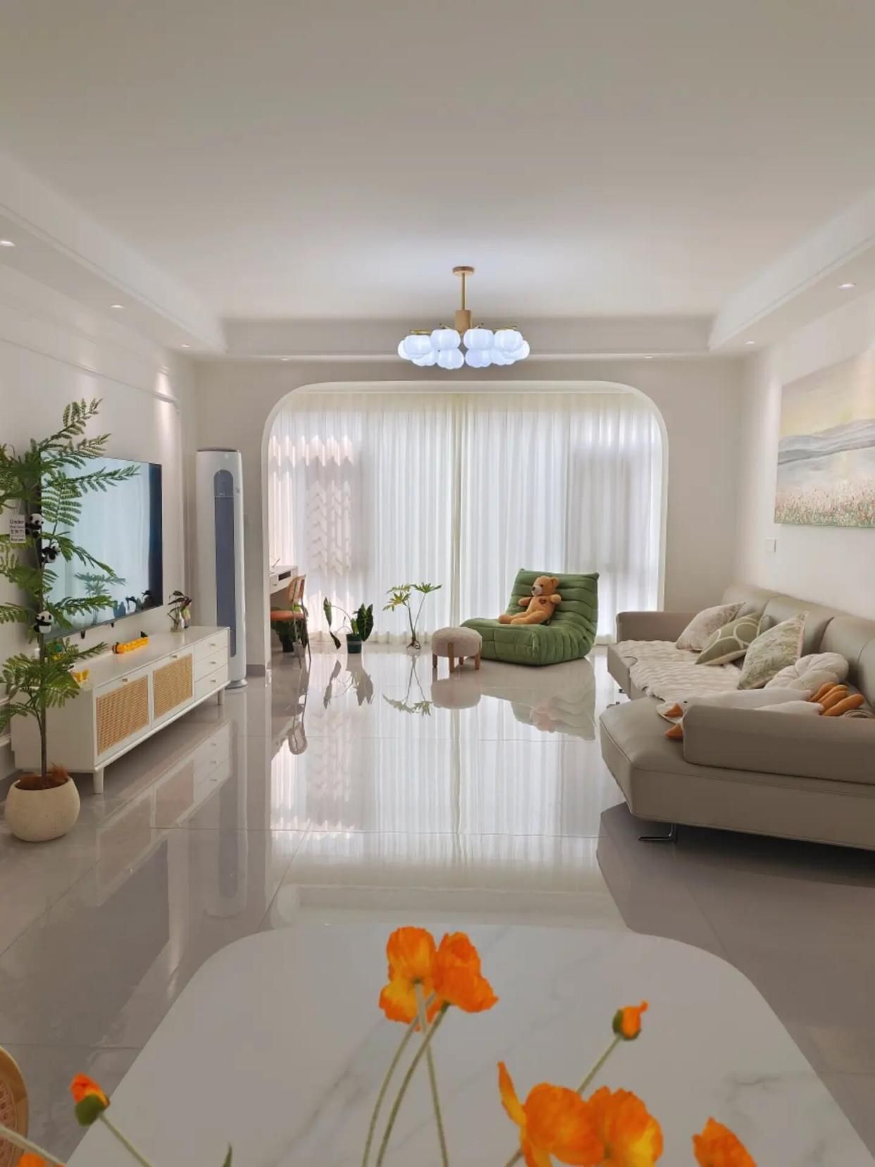 地面铺瓷砖或木地板时,别搞什么过门石、分区铺贴,就全屋通铺,省事、美观,还显得大气。