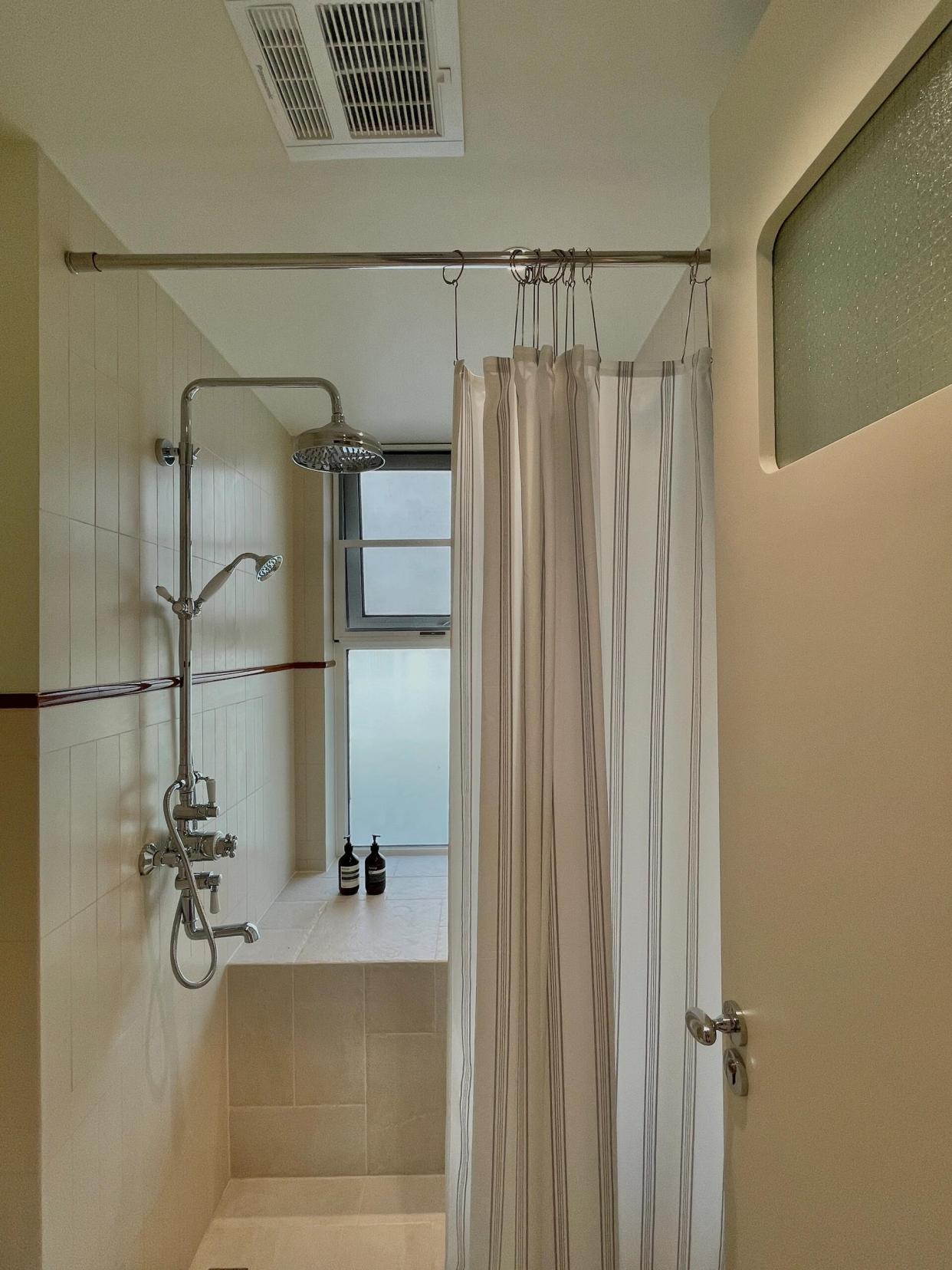 卫生间淋浴房的玻璃特别容易包浆,玻璃上面的水垢、轨道里的污渍霉斑,都是些需要反复清洁的家务活,要是没有淋浴房,卫生间家务活能少一半。