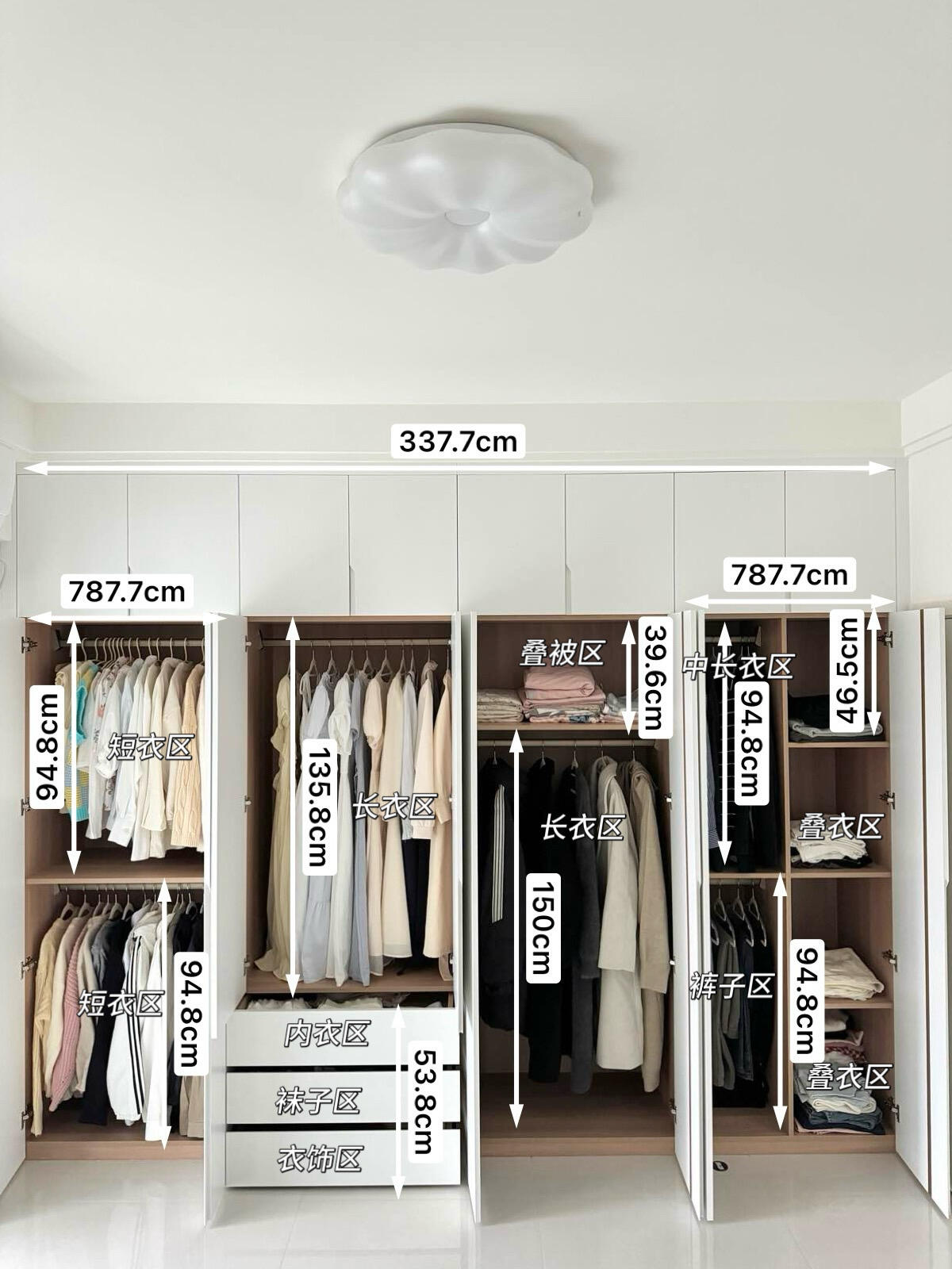 衣柜内部得多留挂衣区,衣服全部都挂起来,不用反复折叠收纳,日常整理衣柜都轻松不少。