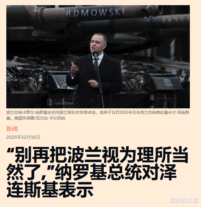 2025年12月17日,距离乌克兰总统泽连斯基访问波兰仅剩两天,波兰新任总统卡罗尔·纳沃茨基选择先在媒体上狠狠地“掀了桌子”。