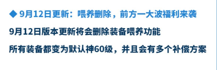 并且在9月12日维护后会先删掉喂养系统,全部装备统一调整为满级属性,到后续的大版本再将自定义装备删除,上线全新的装备,终于不是一套自定义玩到老了。