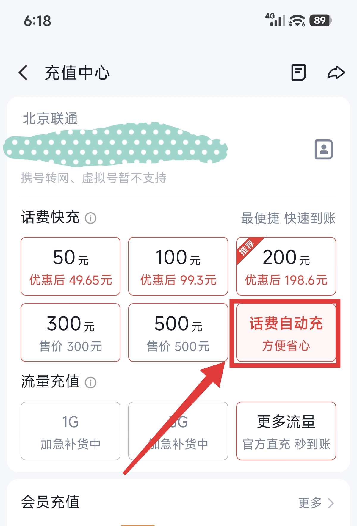 5.到充值中心页面后,点击选择(话费自动充)。