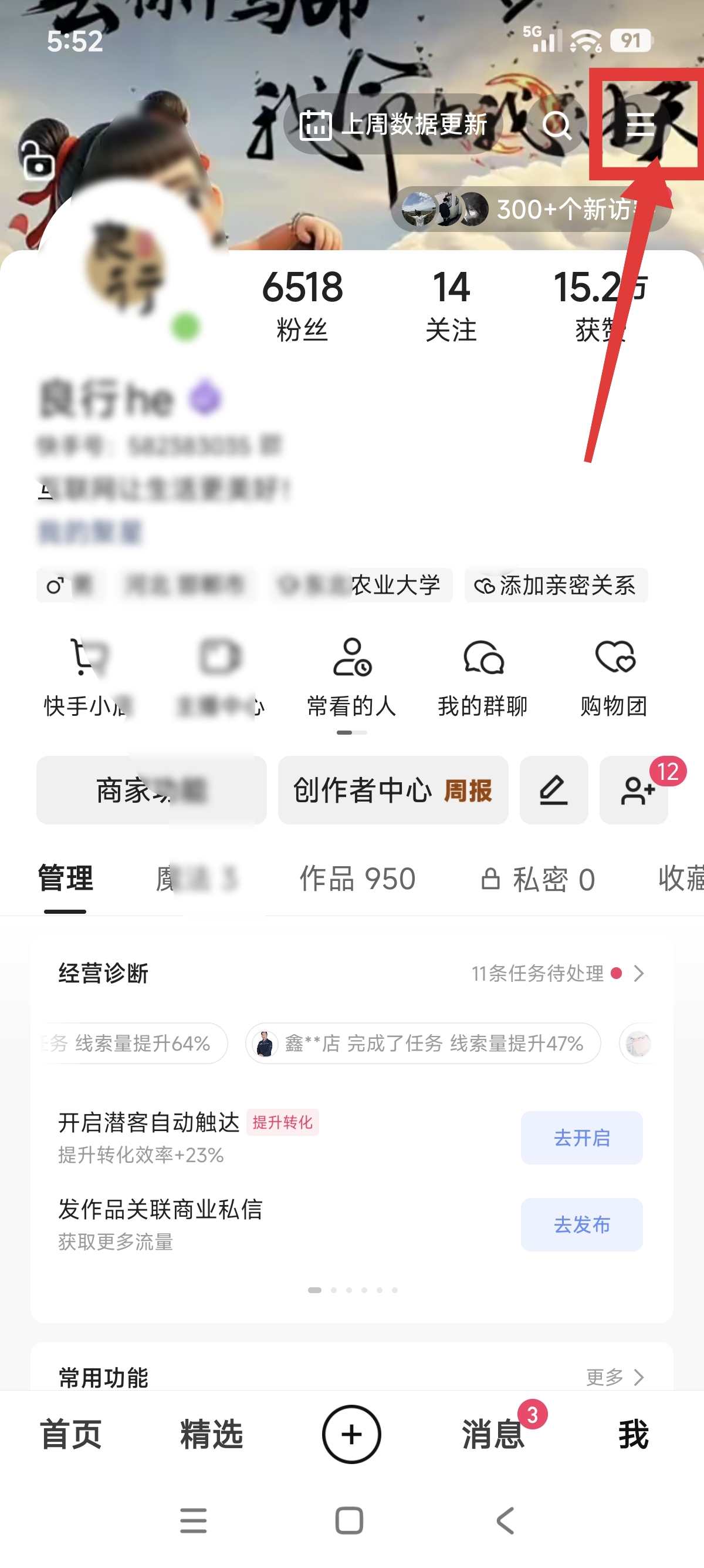 2.进入到我页面后,点击右上角的(三道扛)。