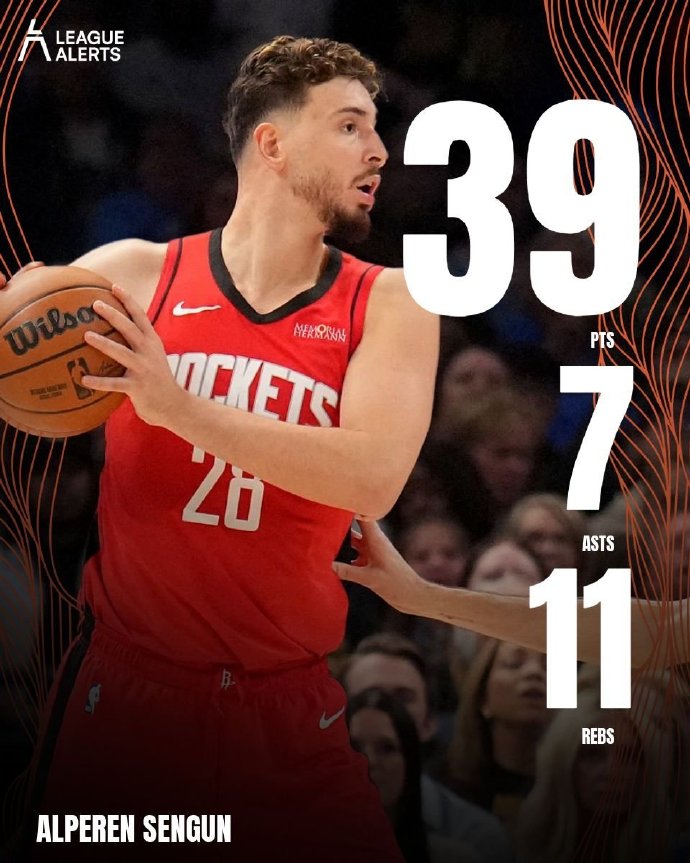 虽然火箭惜败给了雷霆,但申京今天表现非常出色,延续之前在欧洲杯上的火热状态,打出了非常豪华的数据。申京全场比赛出战多达49分钟,投篮24中12,其中三分8中5,罚球11中10,得到39分11篮板7助攻2抢断1盖帽的豪华准三双数据,同时也有4次失误。