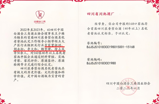 都说“千年老窖万年糟”,酒厂内不仅拥有2000多口发酵窖池,其中窖龄超40的老窖池更是多达近200多口,相信经常喝酒的老酒友都知道,决定一款酒的口感与酒质的是窖池中的微生物菌种,而南池翠酒的窖池与五粮液窖池同等,在23年,同一批被评为了“金三角名优老窖池群”。