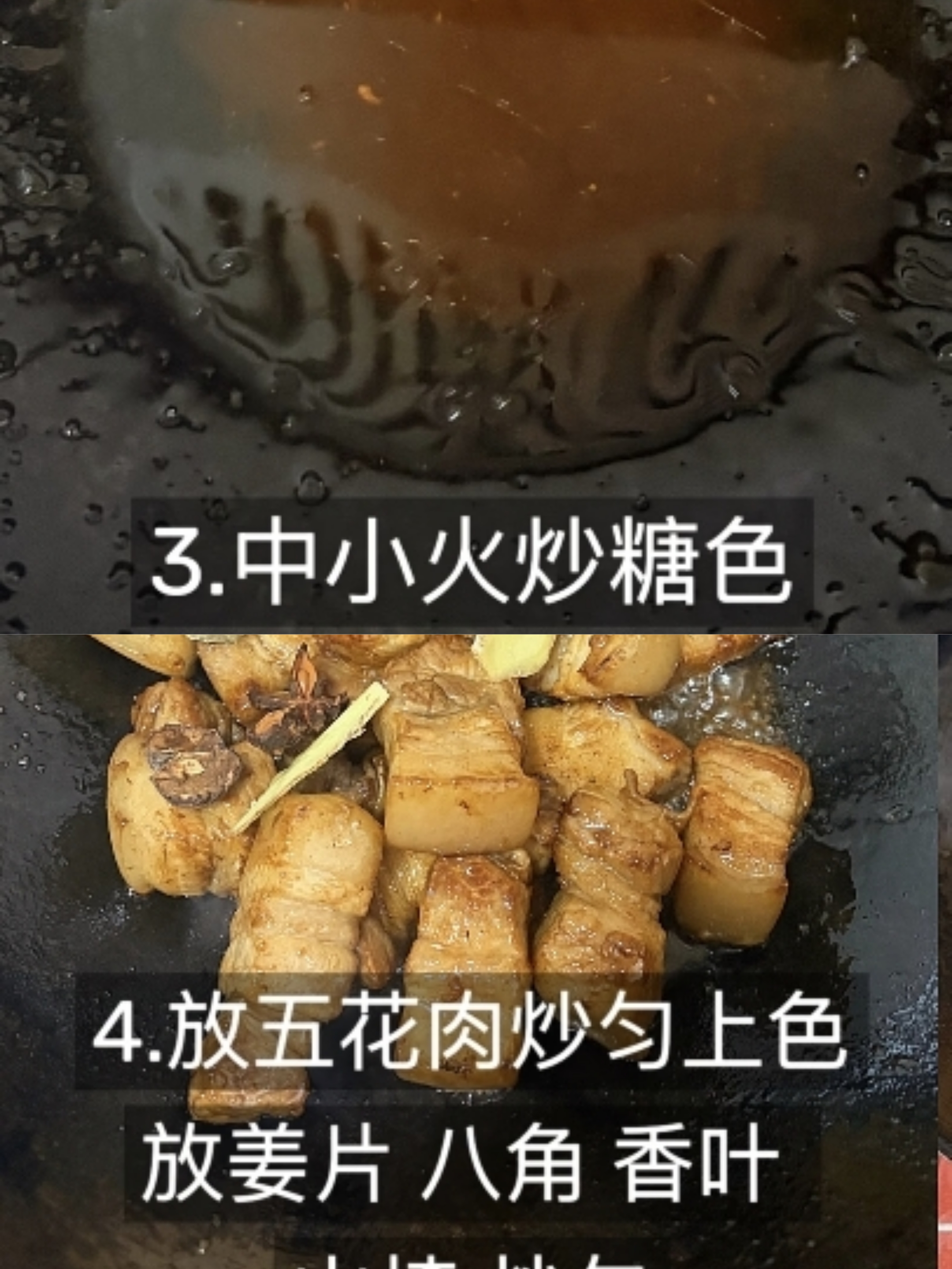 炒糖色是给红烧肉穿上红亮外衣的秘诀,新手也能轻松驾驭。小火加热底油,放入一把冰糖,用铲子不停翻炒,看着冰糖从颗粒融化成琥珀色的液体,再慢慢变成枣红色,当糖液冒起细密的小泡时,立刻倒入煎好的五花肉,快速翻炒,让每一块肉都均匀裹上糖色。这一步要快,别炒太久,不然糖会发苦,毁了整锅菜的味道。