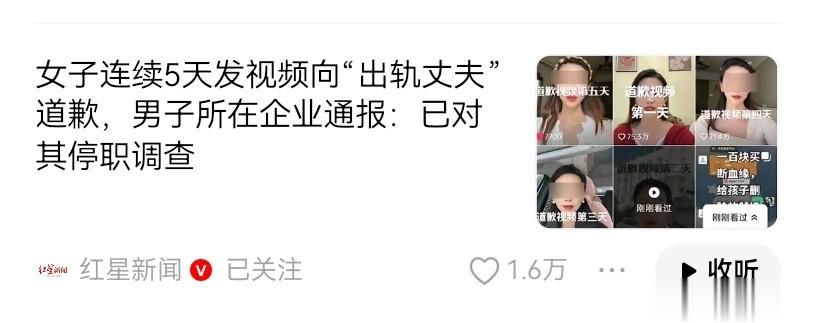 首先,道歉视频是被动的,缘由不是女子主动要求道歉,是法院判决的,但从这6天来的反馈来看,看似丈夫赢得了官司,实际上却输的很惨。