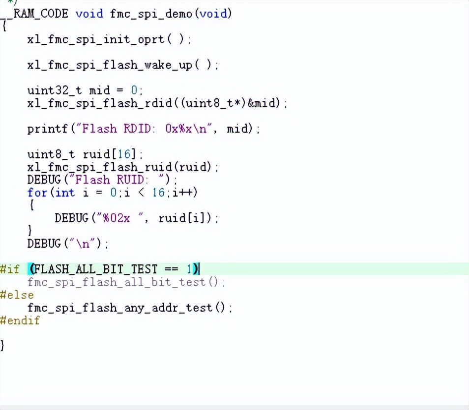 如果FLASH_ALL_BIT_TEST为 1,则执行全位测试fmc_spi_flash_all_bit_test()