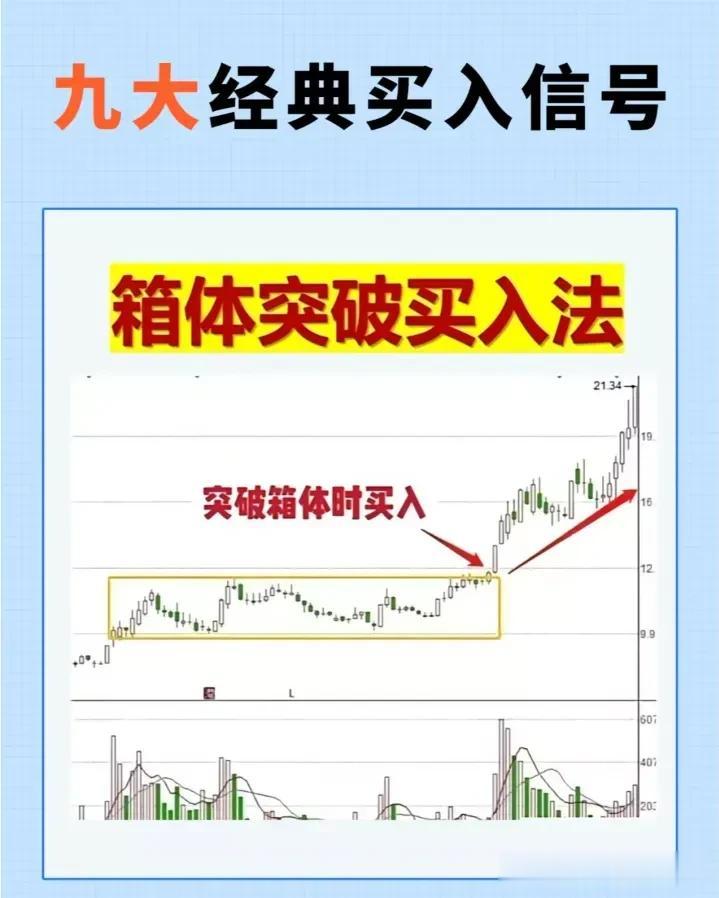 箱体突破买入法:横盘后的爆发买点当股价在一个区间里横了很久,当股价突破区间上沿时,就是明确的买点。这说明横盘整理结束,资金开始发力,后续会涨,突破后回踩区间上沿,也是二次上车的机会,适合做突破的投资者。