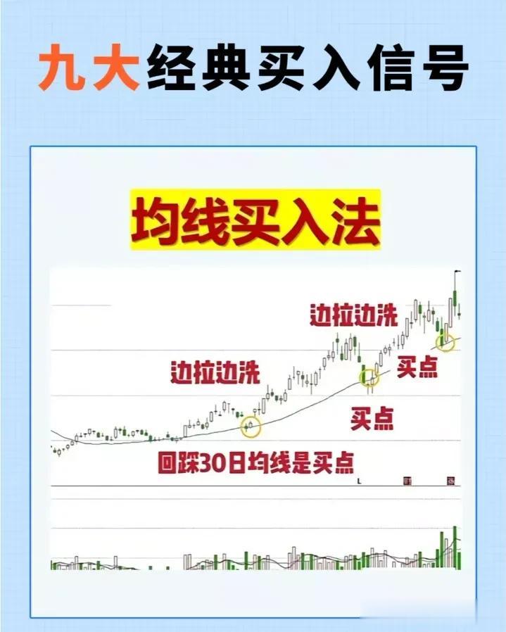 均线买入法:回踩均线的简单买点在上升趋势里,30日均线是强支撑,股价每次回踩30日线,都是不错的买点。只要均线向上走,股价就会被撑起来再涨,方法简单实用,新手也能快速上手,不用复杂分析。
