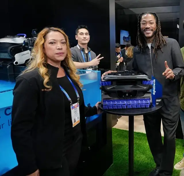 1月7日,NBA传奇球星 Derrick Rose空降追觅展位,在听取现场工作人员讲解的同时, Rose与Dreame Zircon 2 Ultra合照留念;
