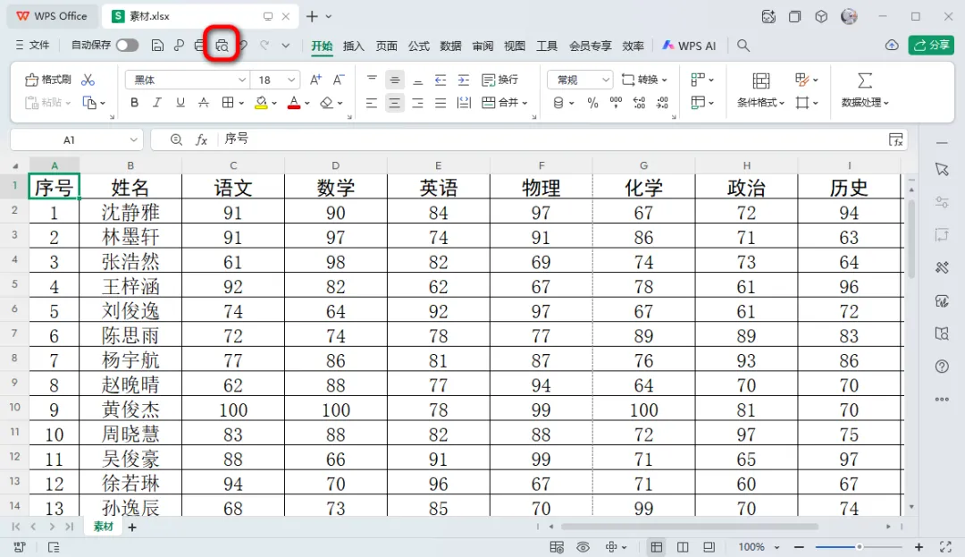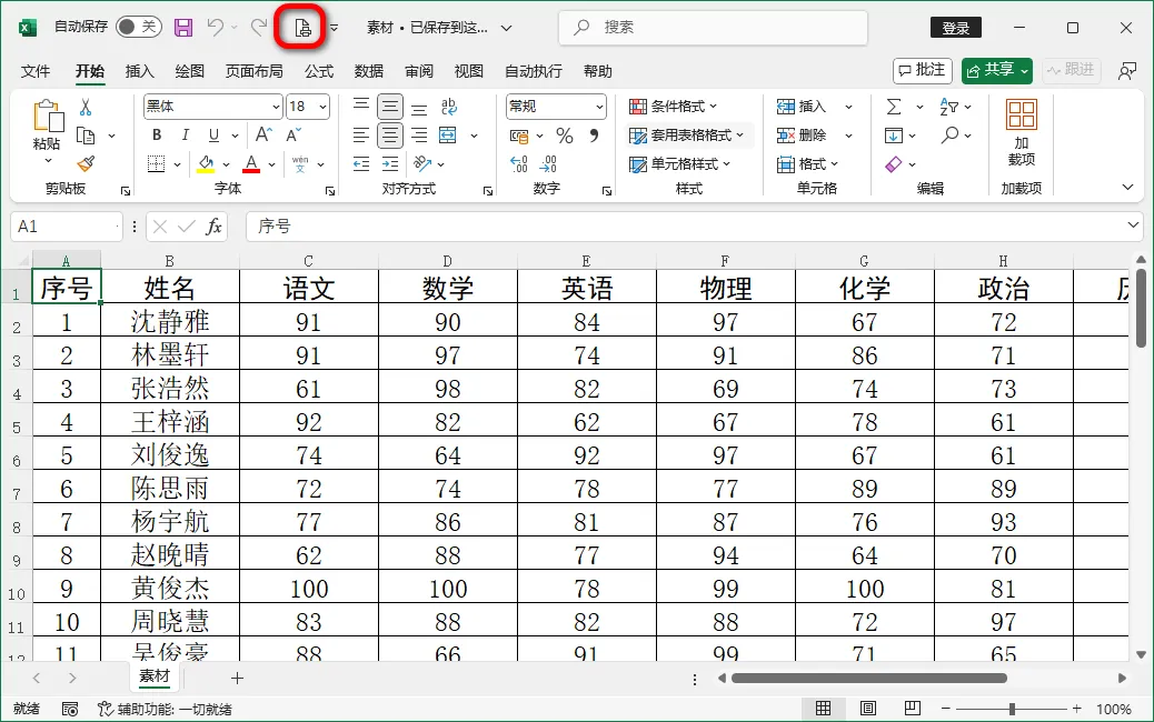 2.点击界面左上角 “快速访问工具栏” 中的 “打印预览” 图标。