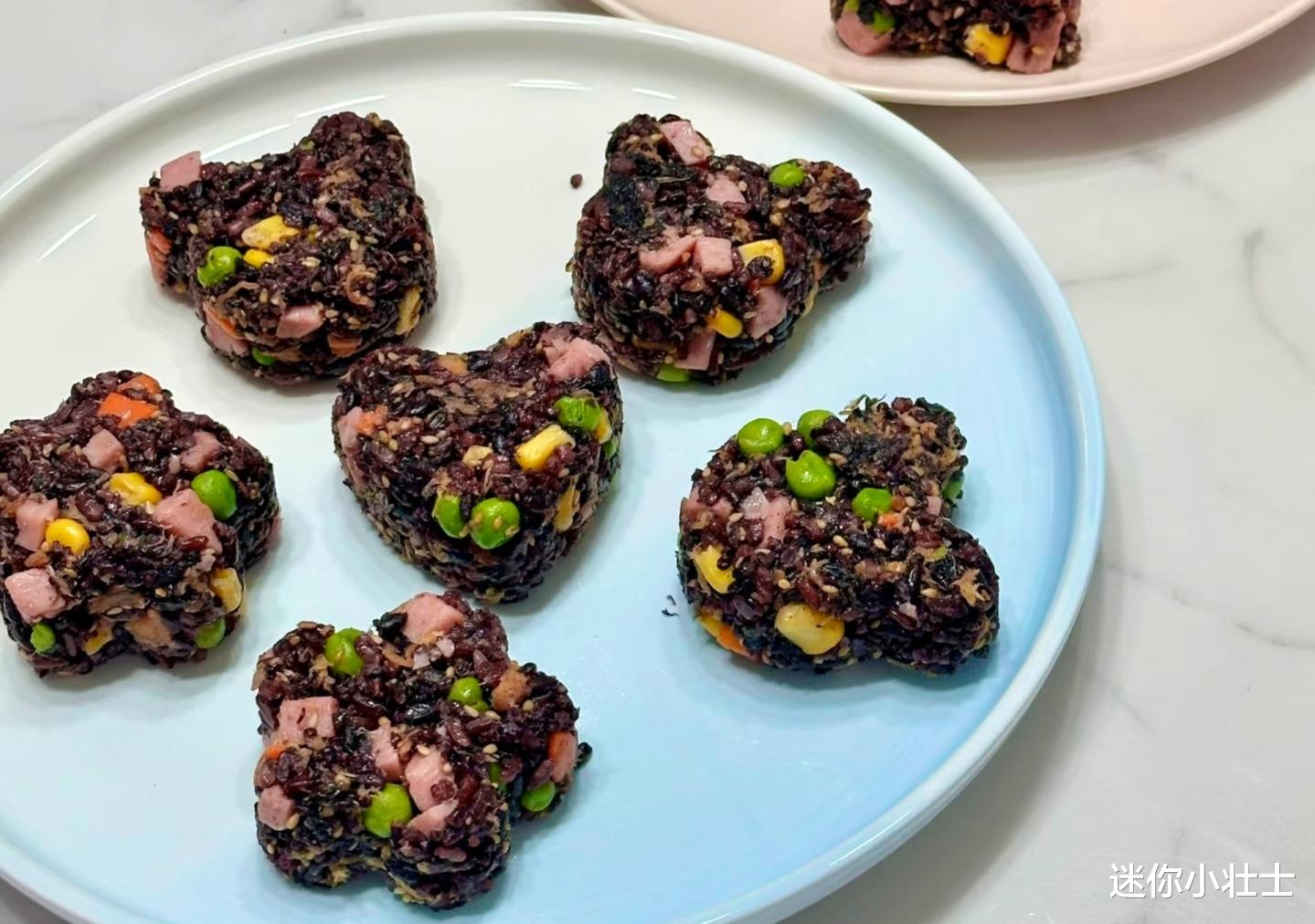周日 调理收尾:可爱杂粮小饭团(适合2岁左右宝宝)把杂粮饭捏成小小饭团,造型可爱,孩子一看就想吃。搭配时蔬和蛋黄羹,一周营养收尾,荤素均衡,不容易缺微量元素。