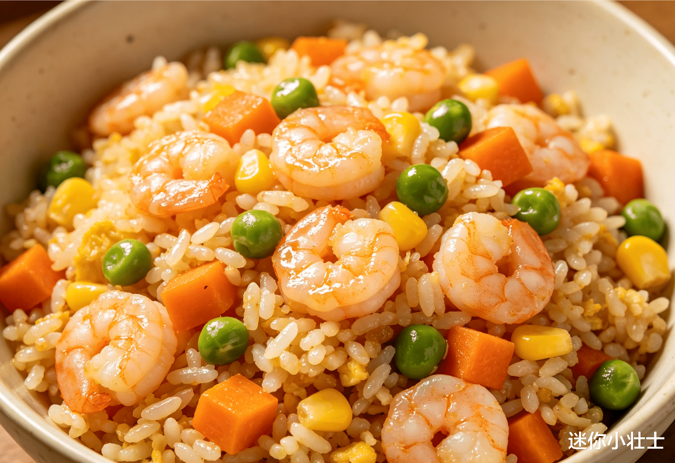 米饭焖得软糯一点,虾仁切碎、蔬菜切小丁,饭菜一锅出。不用单独炒菜、不用单独喂菜,一口饭里有菜有肉有主食,特别适合不爱吃菜、不爱吃肉的挑食宝宝。口感鲜香,孩子接受度很高。