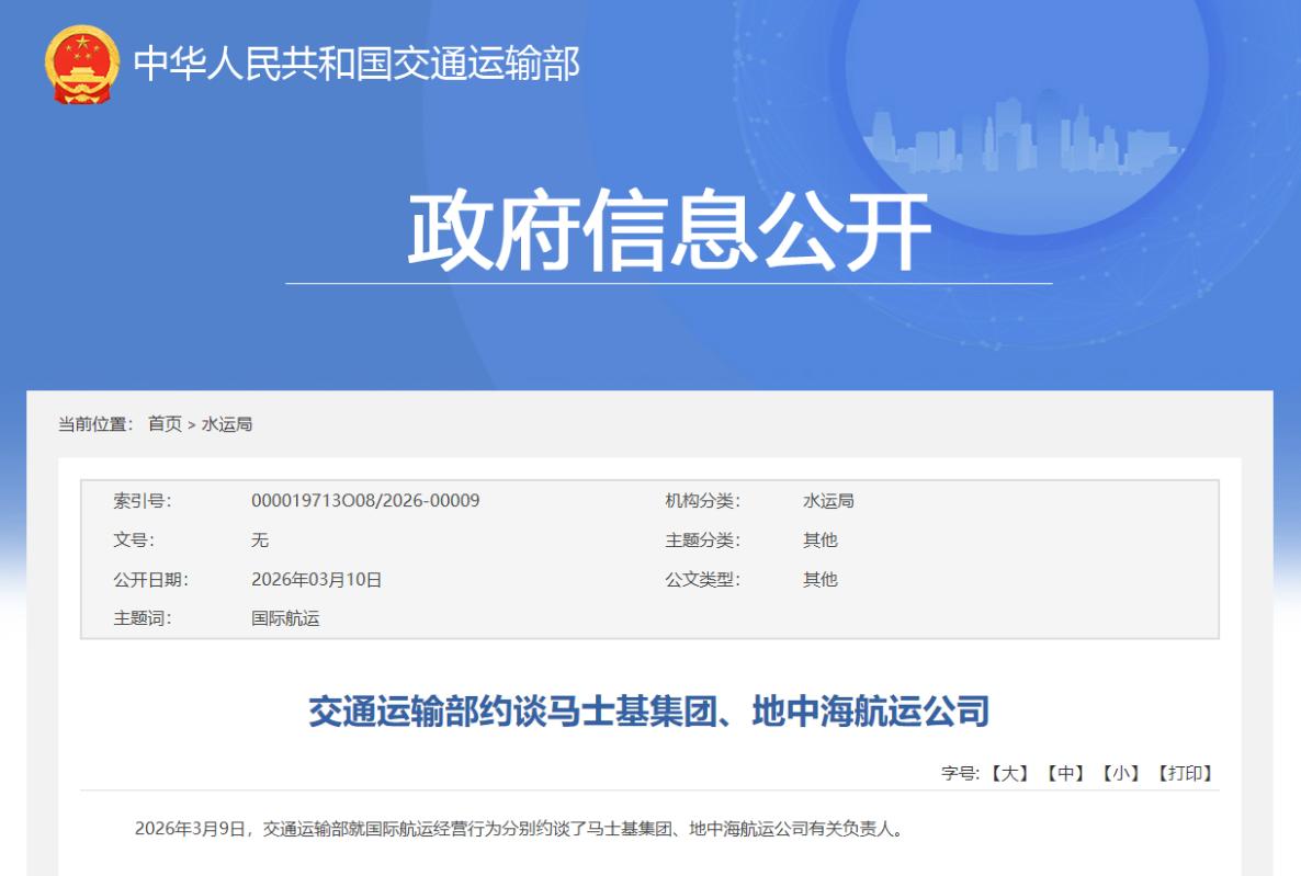 交通运输部约谈马士基集团、地中海航运公司——交通运输部