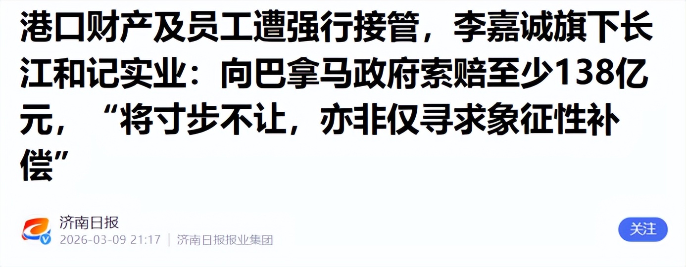 港口财产及员工遭强行接管,李嘉诚旗下长江和记实业:向巴拿马政府索赔至少138亿元,“将寸步不让,亦非仅寻求象征性补偿”——济南日报