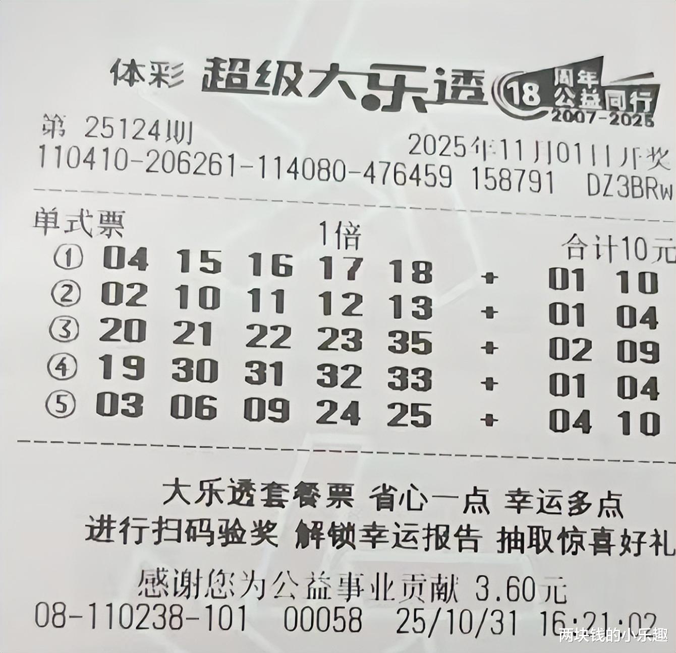 以上就是本期全部内容,剩余内容由复式、胆拖和多张常规单式票组成,领衔出场的是一张9+3的百元复式,这位老哥近期一直以这个规格出票,形式比较稳定,结果也比较稳定,本期晒票中有意思的是最后几张单注倍投票,老哥之前始终是以单注16倍的形式出手,但本期却拆成了3张不同号码组合的票面,倍数也进行了调整,有不少彩友看到后都在议论为何老哥会有如此操作,不管怎样,即使是这么操作,最终也不一定能拿下心中理想的收获,因此大家欣赏时,还是理性对待吧。