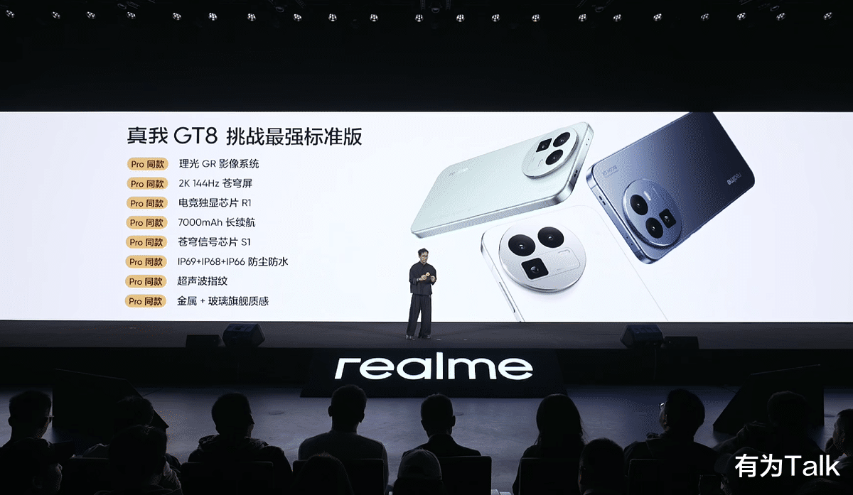 真我 GT8 系列采用 “双旗舰” 策略,Pro 版与标准版核心配置高度重合,仅在细节上拉开差距,避免了传统标准版 “阉割严重” 的问题。性能表现上,两款机型均搭载骁龙 8 至尊版 + 独显芯片 R1。配合 144Hz 高刷屏,游戏体验拉满。而7000mAh 泰坦电池打破旗舰机续航瓶颈,让真我 GT8 系列能够持久续航。补能速度上,Pro 版 120W 快充+50W无线充,标准版 支持100W 快充。真我 GT8 起售价为2899元,真我 GT8 Pro起售价为3999元。