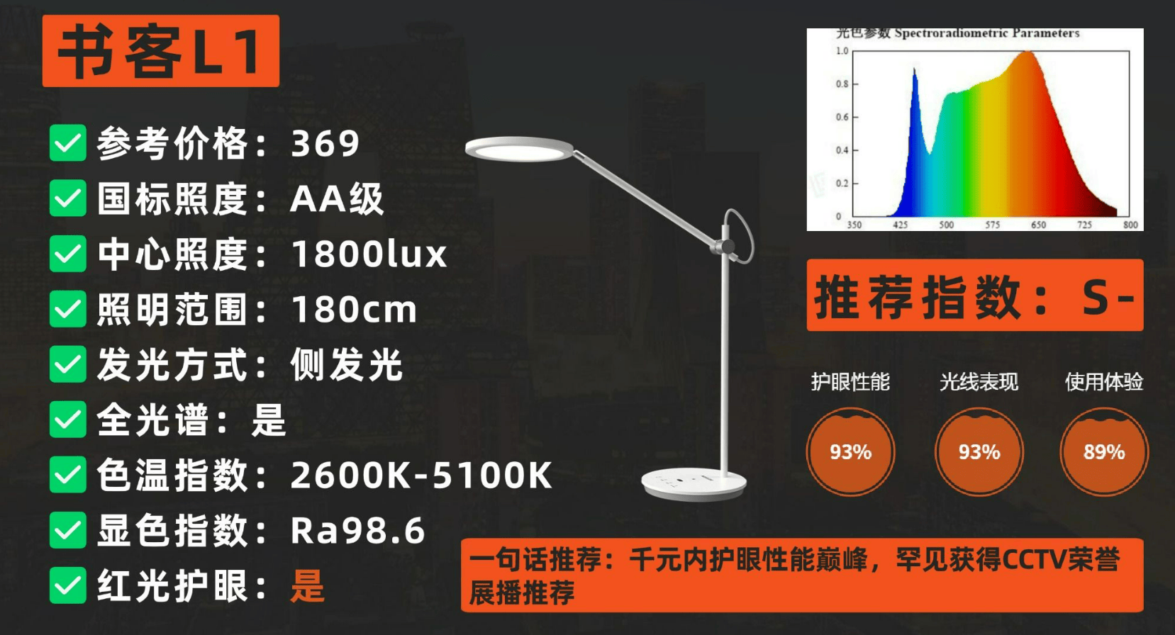 什么护眼台灯比较专业耐用又好用?书客是技术流出身的医疗护眼品牌,技术实力强劲,与多家实验室有合作。“医学护眼”是它的产品理念,选择了不开发多余功能,只专注于性能的产品研发。实现科学安全和自然健康的护眼效果,在中高端产品中口碑排名首位,怪不得被100多家专业媒体评价为“护眼台灯领域的第一品牌”。