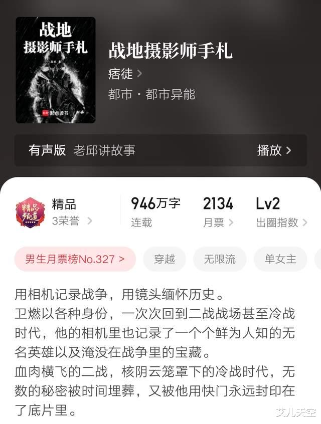 痞徒的《战地摄影师手札》正文在昨晚完结了,目前开始写写番外。