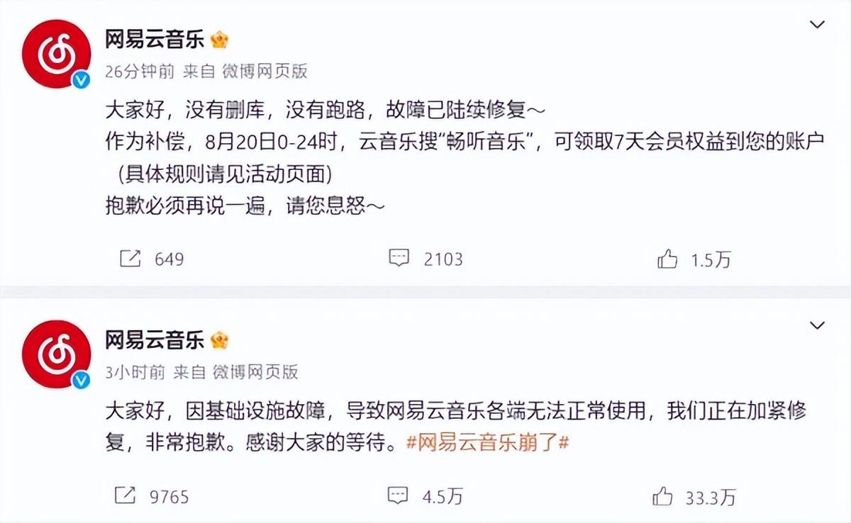 相关话题#网易云音乐崩了#一度登顶微博热搜,引发全网热议,故障持续了两个多小时后才被修复。