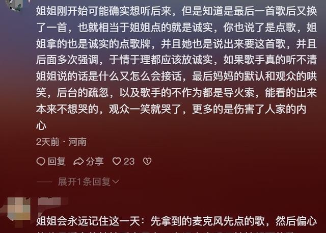 她在里面和稀泥,一首《后来》能在演唱会上水很久,就是不想满足姐姐的愿望,伤了姐姐的心。