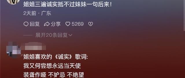 而姐姐能说出来《诚实》的名字,说明她是真的很喜欢这首歌。