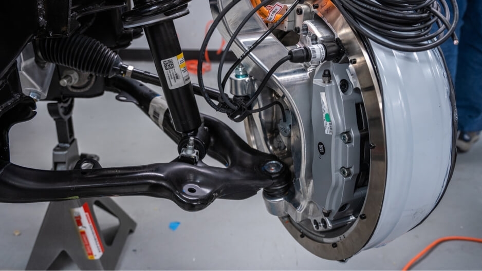 核心动力系统方面,该车搭载由上海汽车电驱动有限公司生产的四台轮毂电机,单台电机最大功率100千瓦,系统综合功率达400千瓦。相比传统驱动形式,轮毂电机由于省去了传动轴、差速器等机械传动部件,可减少约30%的机械损耗,同时降低整车维护成本。
