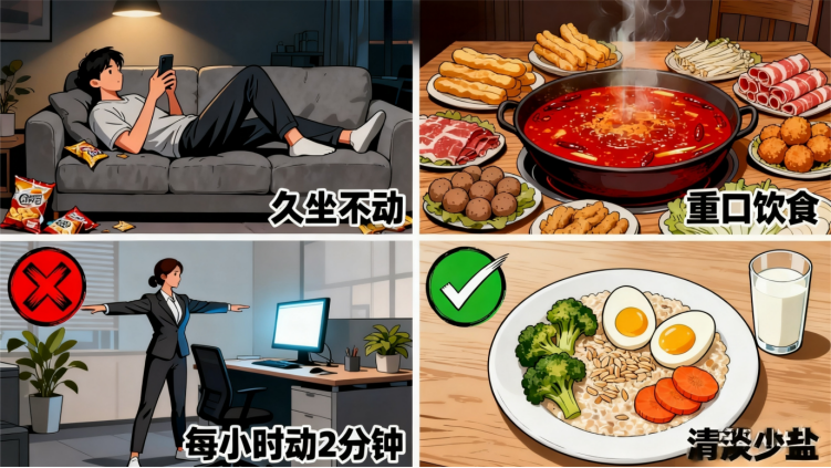 •觉得 “有药就行”,继续久坐、吃重口;