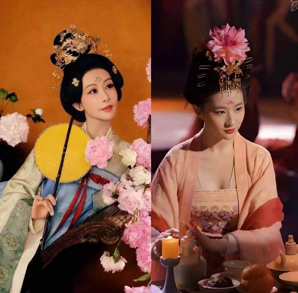观众发现杨紫在《国色芳华》中的造型,和刘亦菲在《梦华录》中的某一造型相似度极高。
