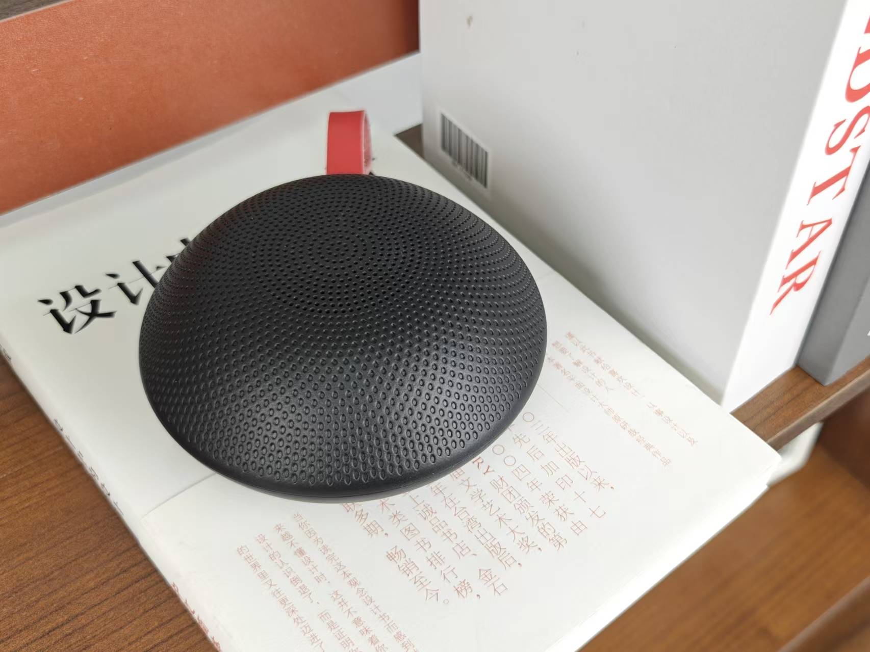 ✦外观设计:这款蓝牙音箱的外观设计走的是极简风,机身小巧且质感细腻,给人一种非常干净的视觉感受。它配有双挂绳设计,使用时可以根据需求调节角度,方便悬挂在不同的地方。