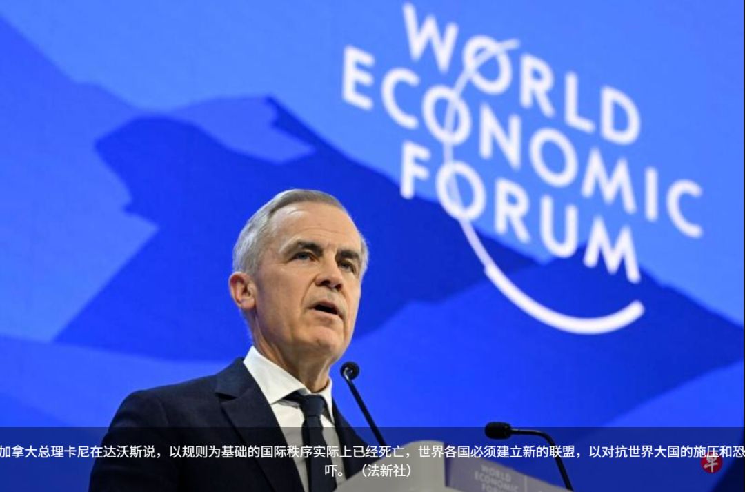 综合彭博社和路透社报道,卡尼星期二(1月20日)在达沃斯举行的世界经济论坛2026年年会指出,近期发生的事件表明,以规则为基础的国际秩序实际上已经死亡,这意味着加拿大和其他国家别无选择,必须建立新的联盟来对抗世界大国的施压和恐吓。
