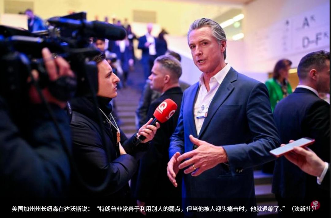 纽森在受访时敦促欧洲领导人停止对特朗普唯唯诺诺,“要有骨气”,“要狠狠地回击他”。他指特朗普是个“软弱”(weak)的人,并表示欧盟应该“非常强硬地”反击特朗普。