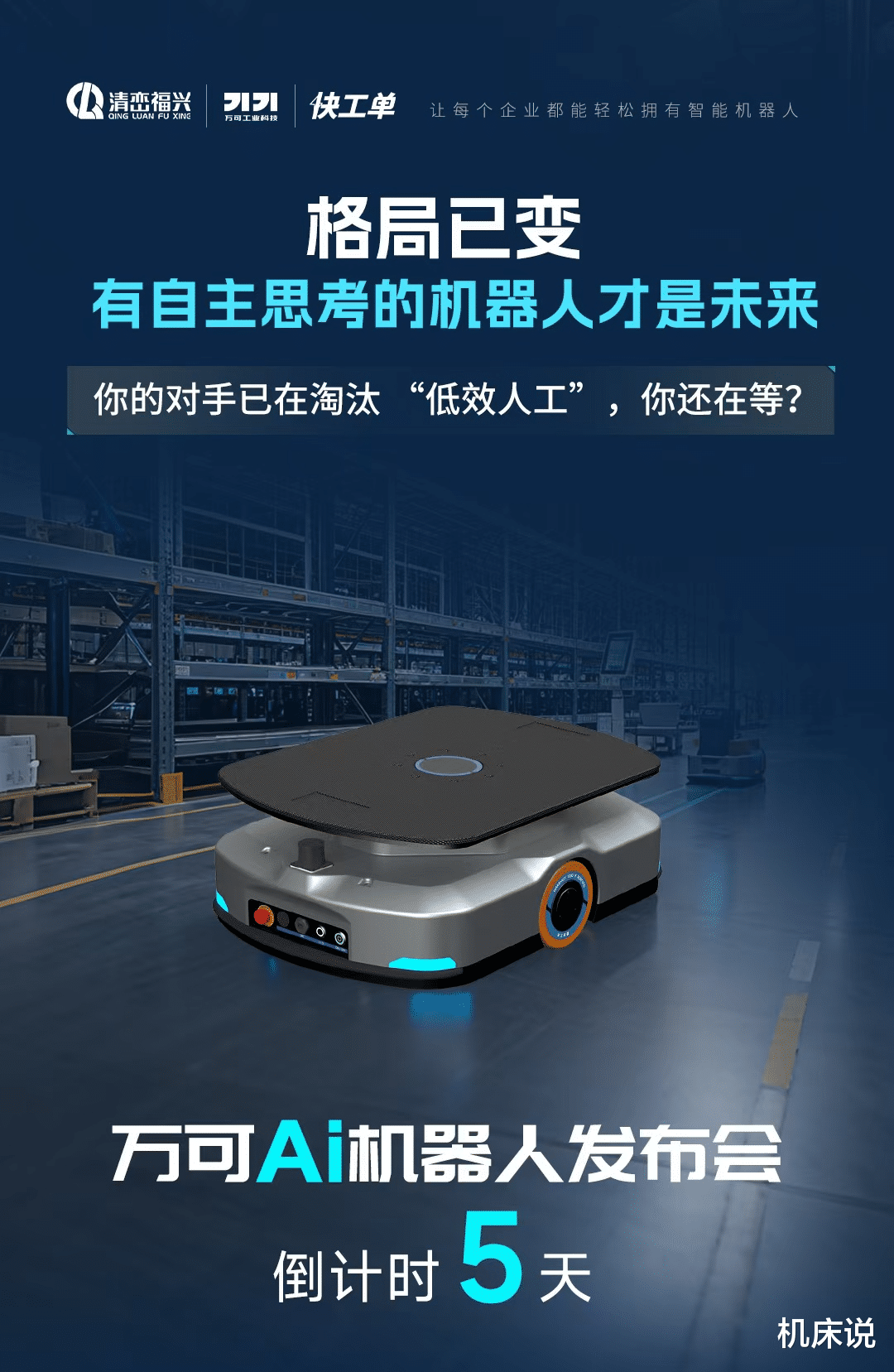 5天后的发布会,万可“金刚牛”与“小金刚”将正式揭开面纱,用硬核技术与高性价比方案,为制造业和仓储物流行业注入新动能。