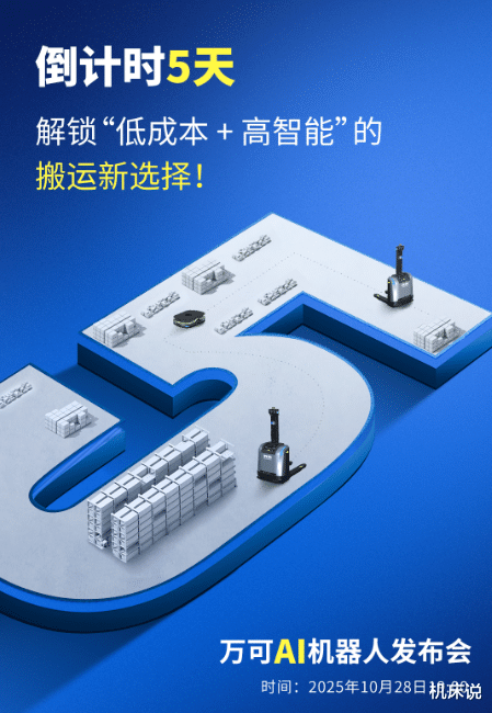 倒计时5天:专属福利与行动指令万可AI智能AGV搬运机器人发布会将于2025年10月28日19:00正式举行。此次发布会将推出“一站式定制方案”,针对汽车制造、3C电子、仓储物流等不同行业提供场景化解决方案。