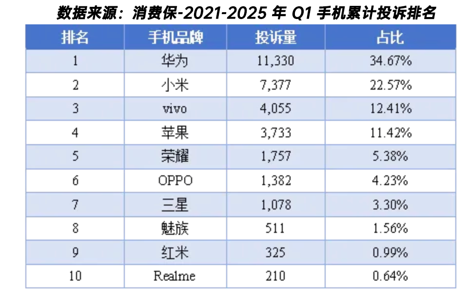 OPPO Find X9 的热销,绝非单一产品的偶然成功,而是品牌全链路品控体系的集中兑现,这一点在权威投诉数据中体现得淋漓尽致。消费保 10 月 23 日数据显示,2021-2025 年 Q1 国内手机累计投诉 32680 件,OPPO 在六家主流厂商中投诉量最低,且比第一名低了整整 30%。
