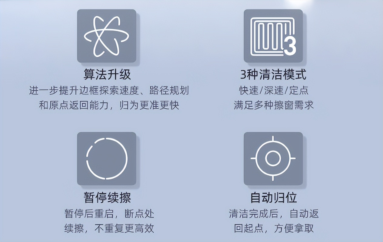 ·入门款可选Z字形基础路径规划;中高端机型优先AI导航+3D避障,如科沃斯W1S的弓字形路径,能精准识别窗框、把手等障碍物,减少漏擦和碰撞,适合窗户有较多凸起的家庭。