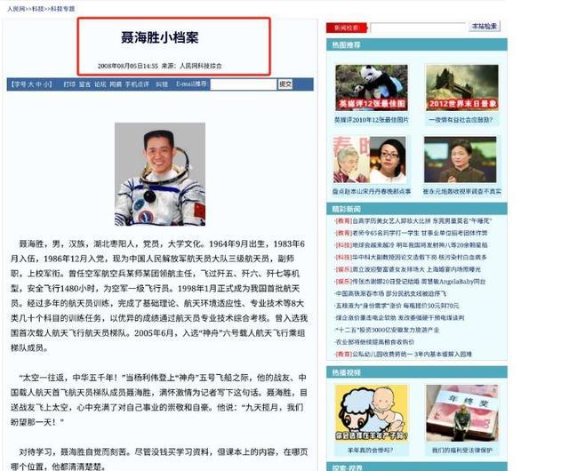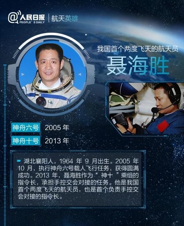 在2005年的10月12日,神舟六号顺利起飞,聂海胜就是其中的一员!