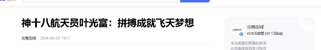 神十八航天员叶光富:拼搏成就飞天梦想 北晚在线 2024-04-24