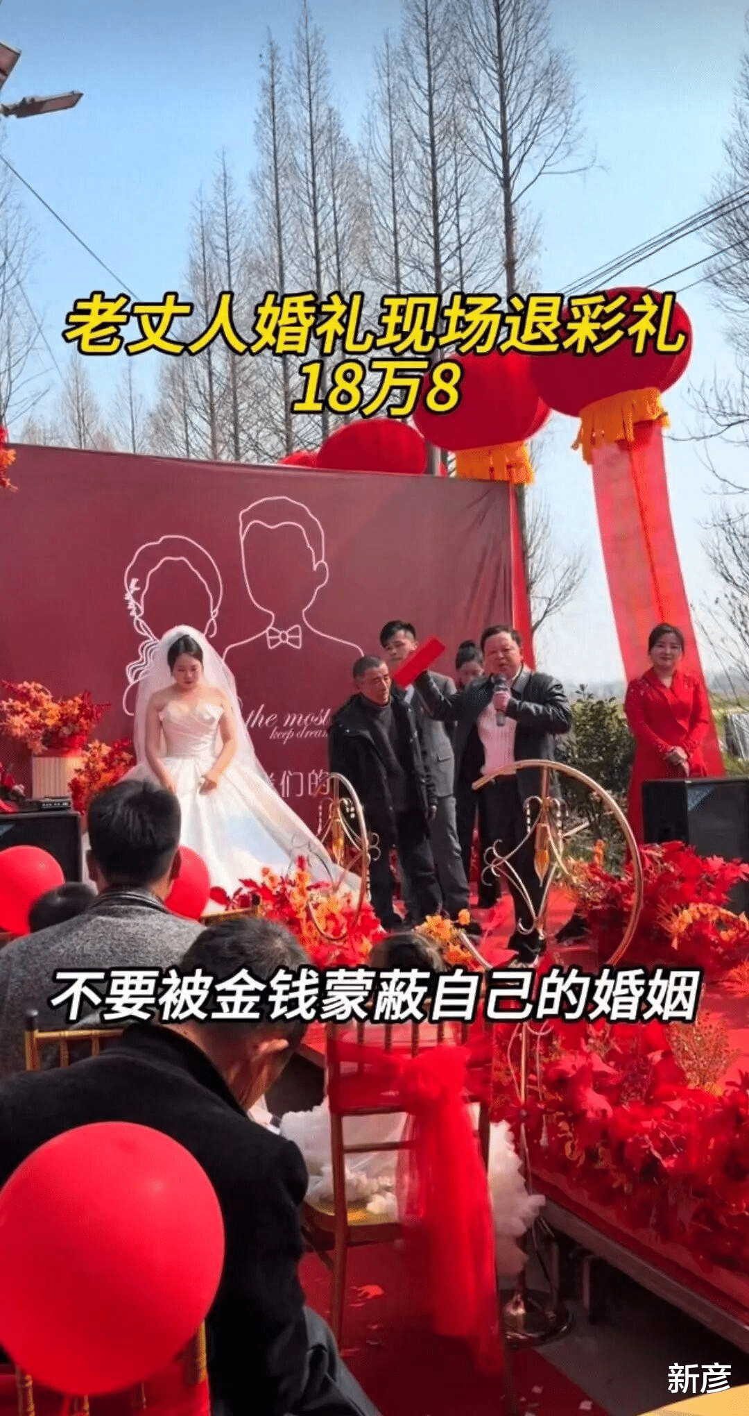 新娘爸爸在婚礼现场宣布退还彩礼。