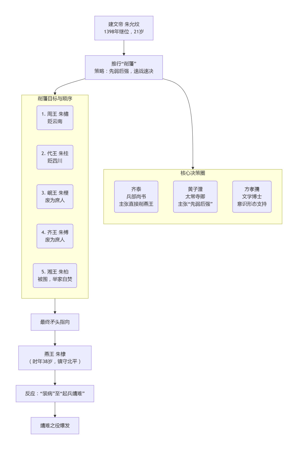 其与谋臣(齐泰、黄子澄等)的“削藩”策略,是点燃战火的直接引信。