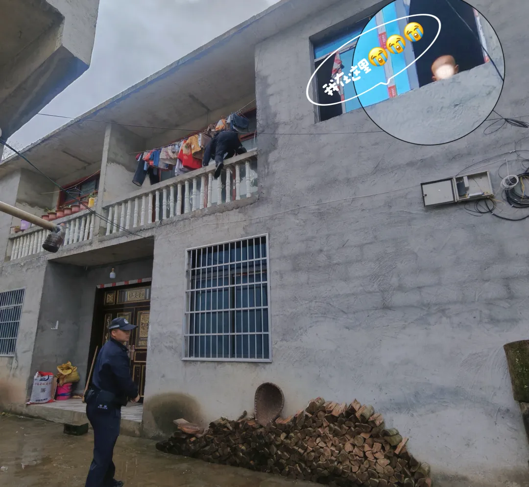 到达现场时,报警人早已在门外泣不成声,隔着门窗能清晰听到屋内孩子的哭闹声,二楼窗台处孩子小小的身影更是揪紧了所有人的心。为了最快速度救下孩子,所长梁正伦第一时间勘察现场:正门反锁无法快速开启,二楼窗台孩子随时可能坠落,一楼窗户成为最可行的救援通道。