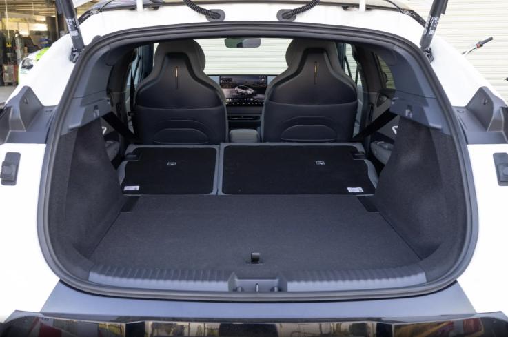 此外,整台车在细节方面也展现了一些颜值车型该有的设计,譬如车顶采用黑钻棱切工艺,侧窗隐藏水切线条简洁,搭配纯平侧窗和无框外后视镜,强化了科技感。而像无框车门并没有缺席,虽提升了颜值和运动感,但牺牲了一部分座舱隔音静谧性。还有溜背造型也是如此,外观时尚个性,但牺牲了一些后备箱容积,日常使用中纵向高度可能略显局促,但实际后备箱储物空间仍有450升,长途旅行也有较可观的装载性能,后排座椅放倒后,拓展容积可达1410升。