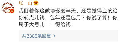 而张一山也没改变,依旧是那种模式“互怼狂人”直接在微博下面评论:琢磨了半天,觉得还是要给你转点钱,你这属于大号儿!