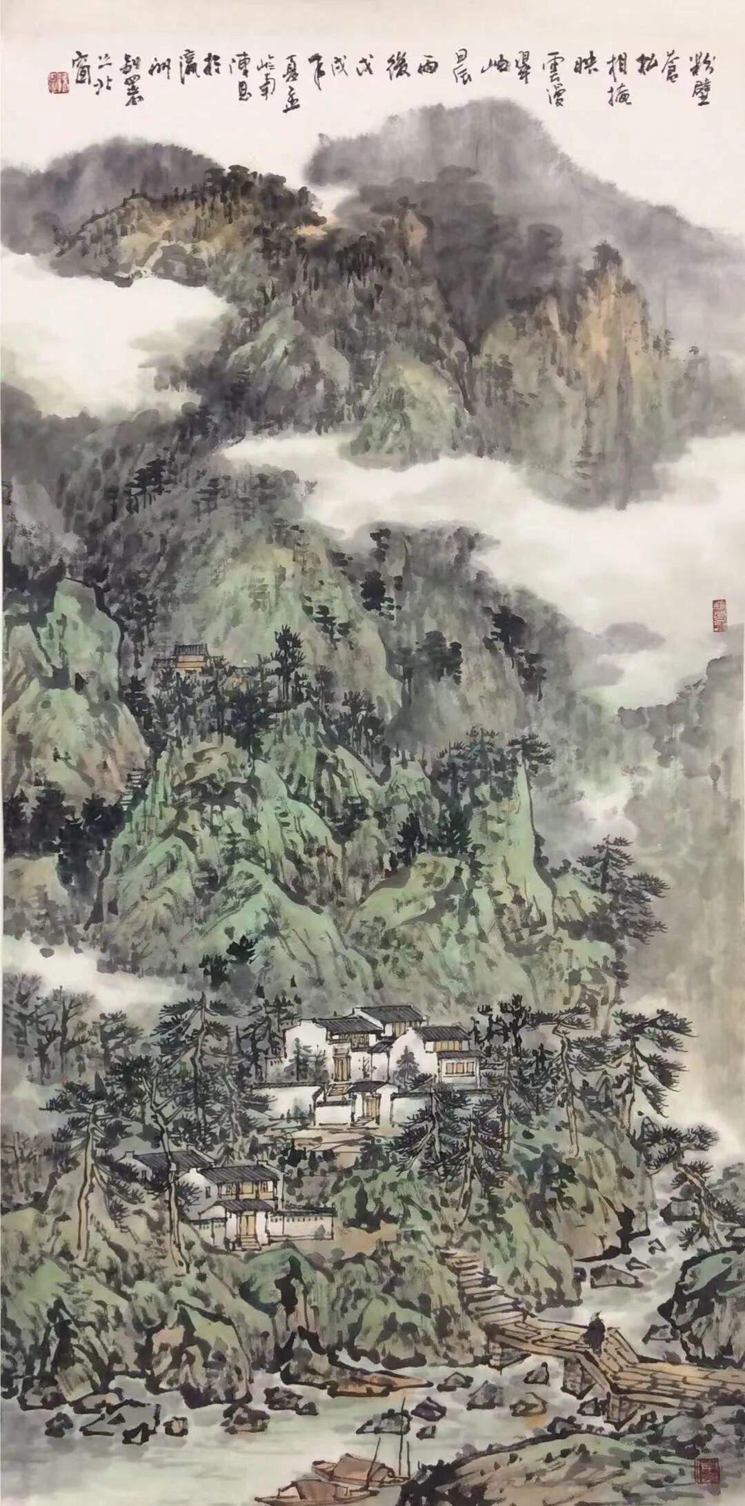融汇南北、兼容并蓄,是陈恩艺术风格的鲜明标识。他既汲取岭南画派的清新灵动,又吸纳北方山水的雄浑气象,在“南韵北骨”的融合中开辟出新的艺术境界。尤为值得称道的是他的青绿山水,既坚守水墨精神的内核,又充分发挥色调的表现力度,使作品兼具水墨的笔墨张力与色彩的浑厚明丽,打破了青绿山水易显浮华、水墨山水略显单调的局限,形成独树一帜的个人风格,为当代青绿山水的创新提供了宝贵范例。