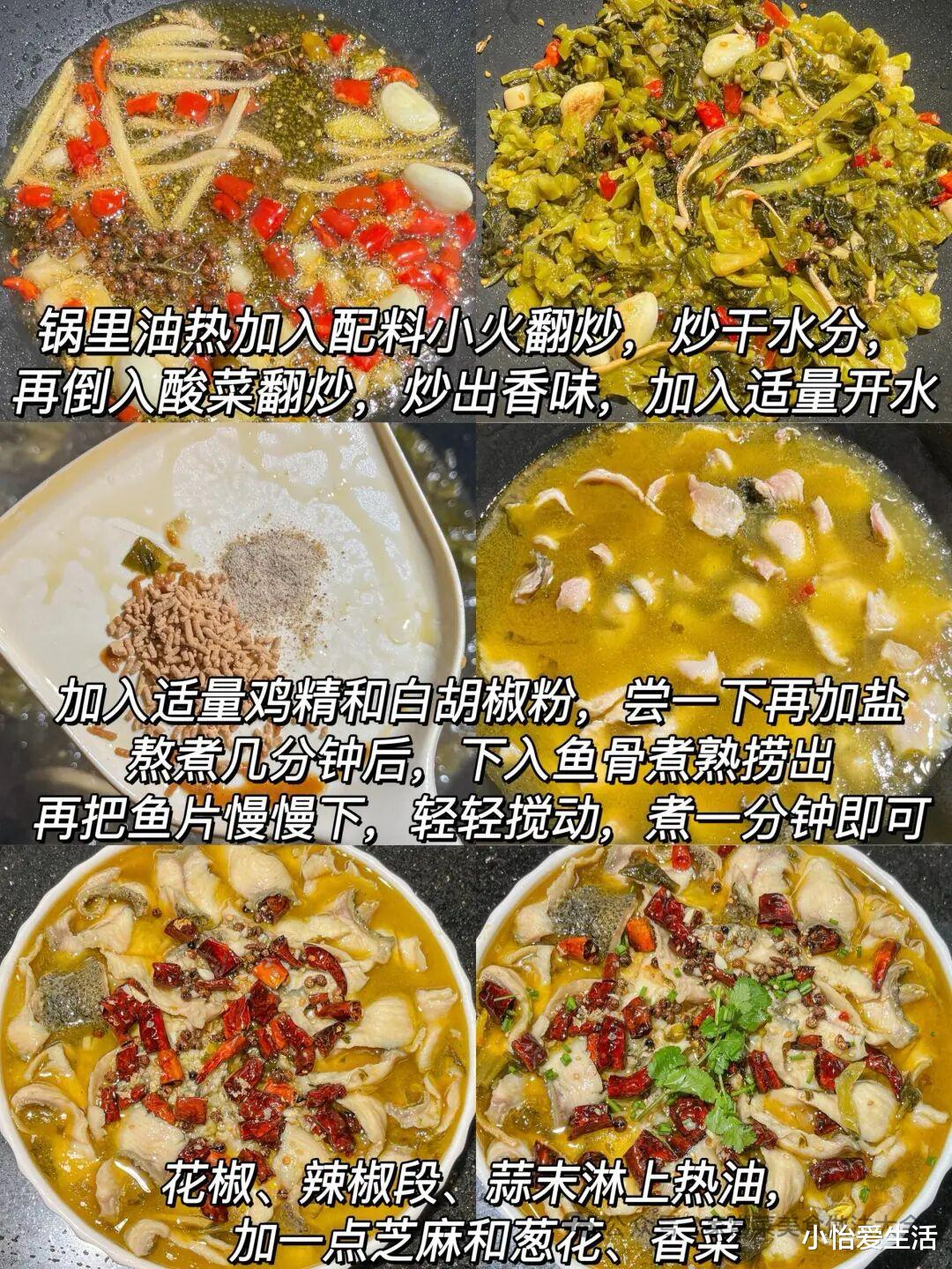 黑鱼片成蝴蝶片,鱼骨留用。锅里放少许油,下鱼骨、姜片煎到微焦,加开水大火滚5分钟,汤立刻奶白,免费高汤GET!另起油锅,爆香蒜末、花椒、干辣椒,加酸菜炒干水分,倒入刚才的高汤,煮开后下鱼片,30秒即可关火。鱼片嫩不碎的秘诀:提前用蛋清、淀粉、盐抓匀,静置10分钟,给鱼片穿件“防弹衣”。酸菜鱼是重庆船工的发明,早年江风大,渔民把酸菜和鱼一锅煮,酸辣驱寒,后来一路“游”上全国餐桌。