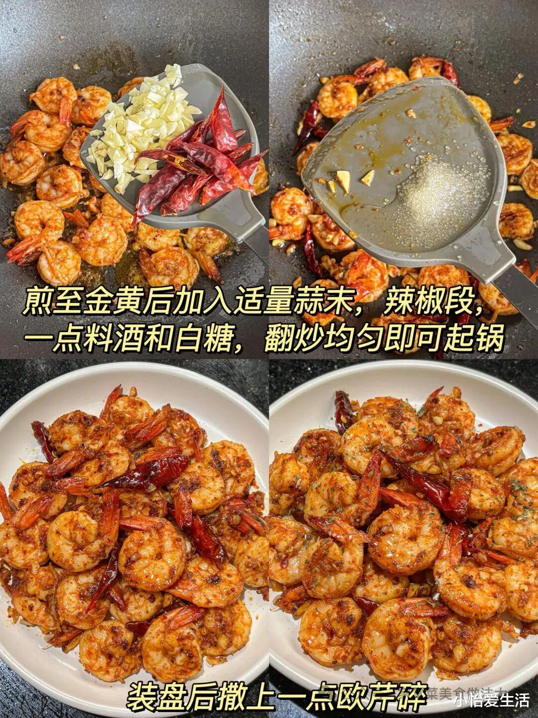 虾剪须去虾线,背部划一刀,下锅前用厨房纸吸干水分,这是“不爆油”的生命线。冷锅冷油铺满蒜末(别怕多,虾和蒜是官配),小火炒到蒜微黄,放虾转中火,壳一红就加1勺生抽、半勺糖、少许白葡萄酒,盖锅焖1分钟,开盖撒葱花,香气能叫醒隔壁午睡的猫。小技巧:出锅前淋一点点蒜油,亮度+100分。