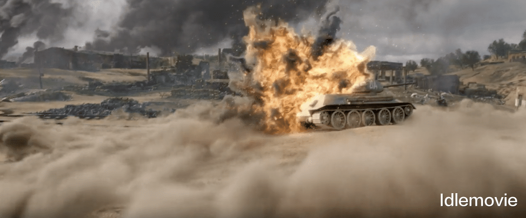 前面都是讲个体,一个个人物小故事,最后应该来一场宏大叙事,金城战役就是最好的收尾,但陈凯歌给出的答案是1v1的坦克大战,CG特效还满满的动画感。