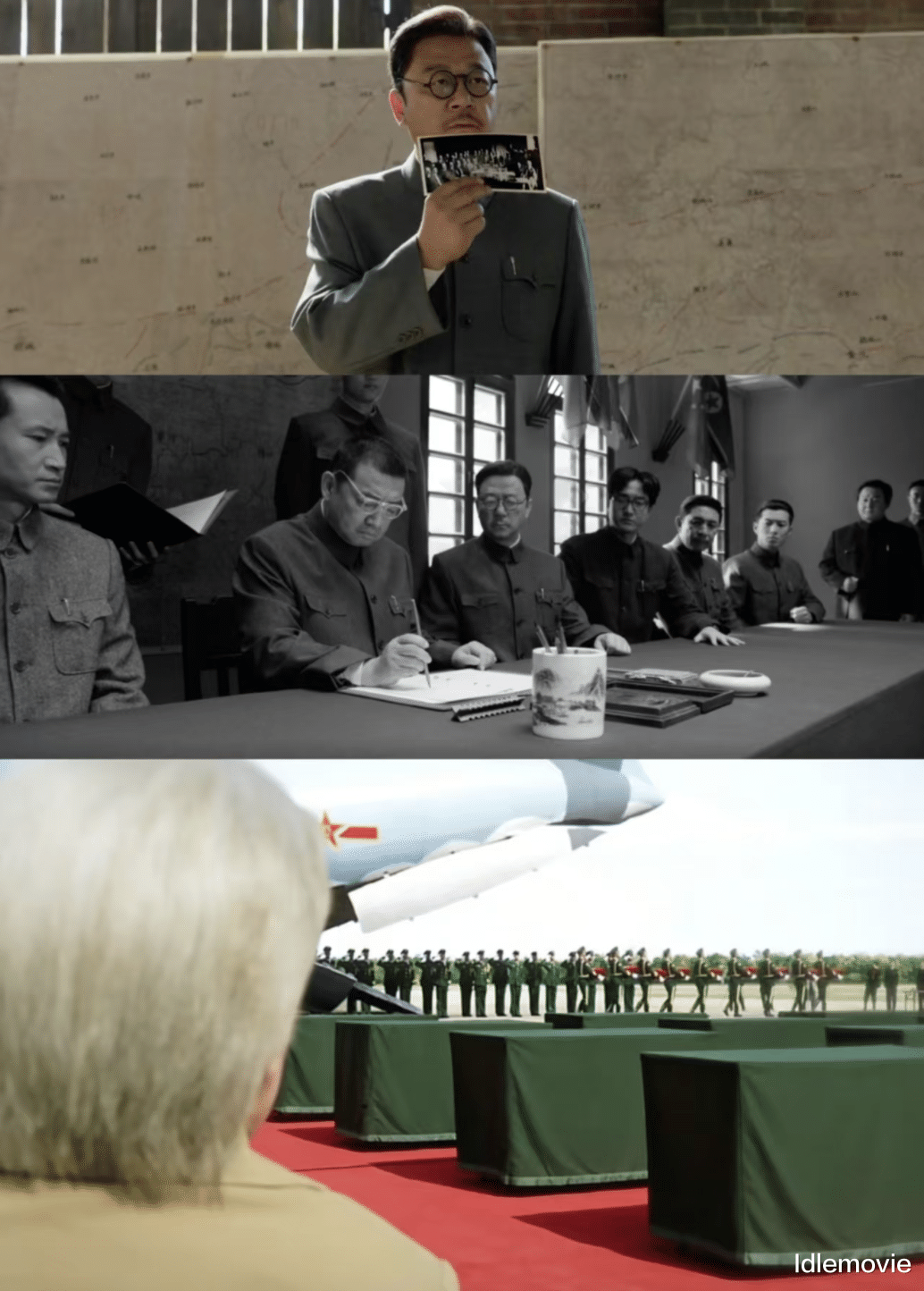 这样一来,抗美援朝成了一种宿命论,角色的安排就是照本宣科,到点下线,每一个士兵的性命都宝贵,不能为了赚得观众的眼泪做无谓牺牲的设计。