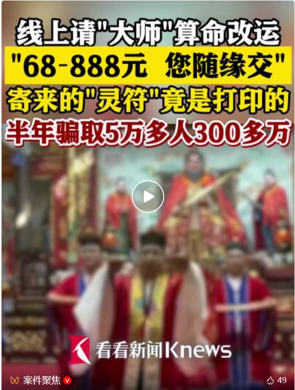 其次,AI伪造“靠谱假象”:骗子用AI生成虚假的客户反馈,包括虚假的聊天记录(“大师,我复合了!”)、虚假的转账截图、虚假的好评,甚至用AI生成“大师做法”的视频,营造“灵验、靠谱”的氛围。更有甚者,用AI搭建“虚拟大师”账号,全程用AI数字人直播,不需要真人出镜,就能实现24小时不间断引流——这种虚拟大师的制作成本,仅需几千元,却能轻松收割上万元。